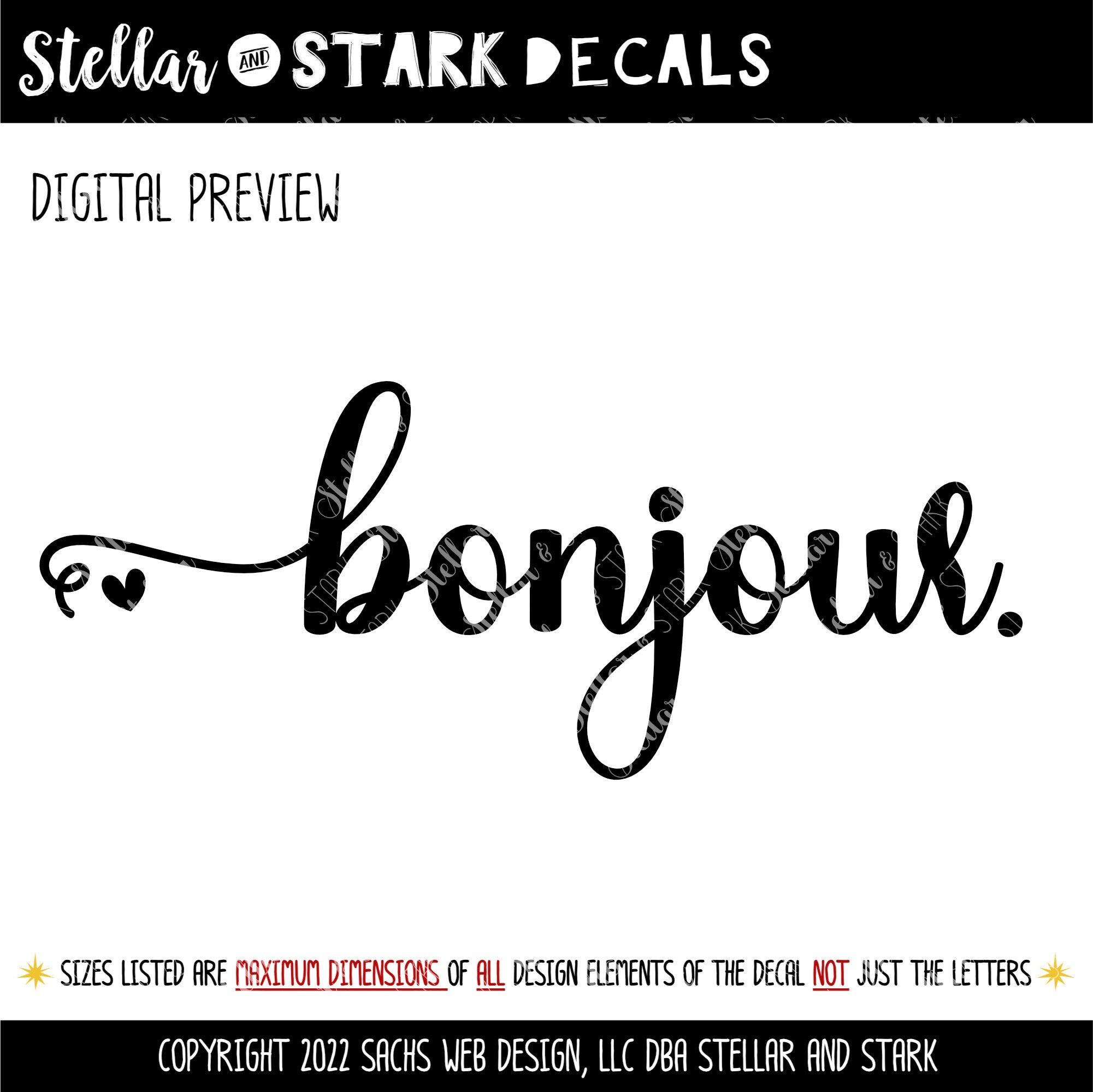 Say Bonjour with Heart with this decal - add some love to your door or wall with the Bonjour w/Heart... Read more