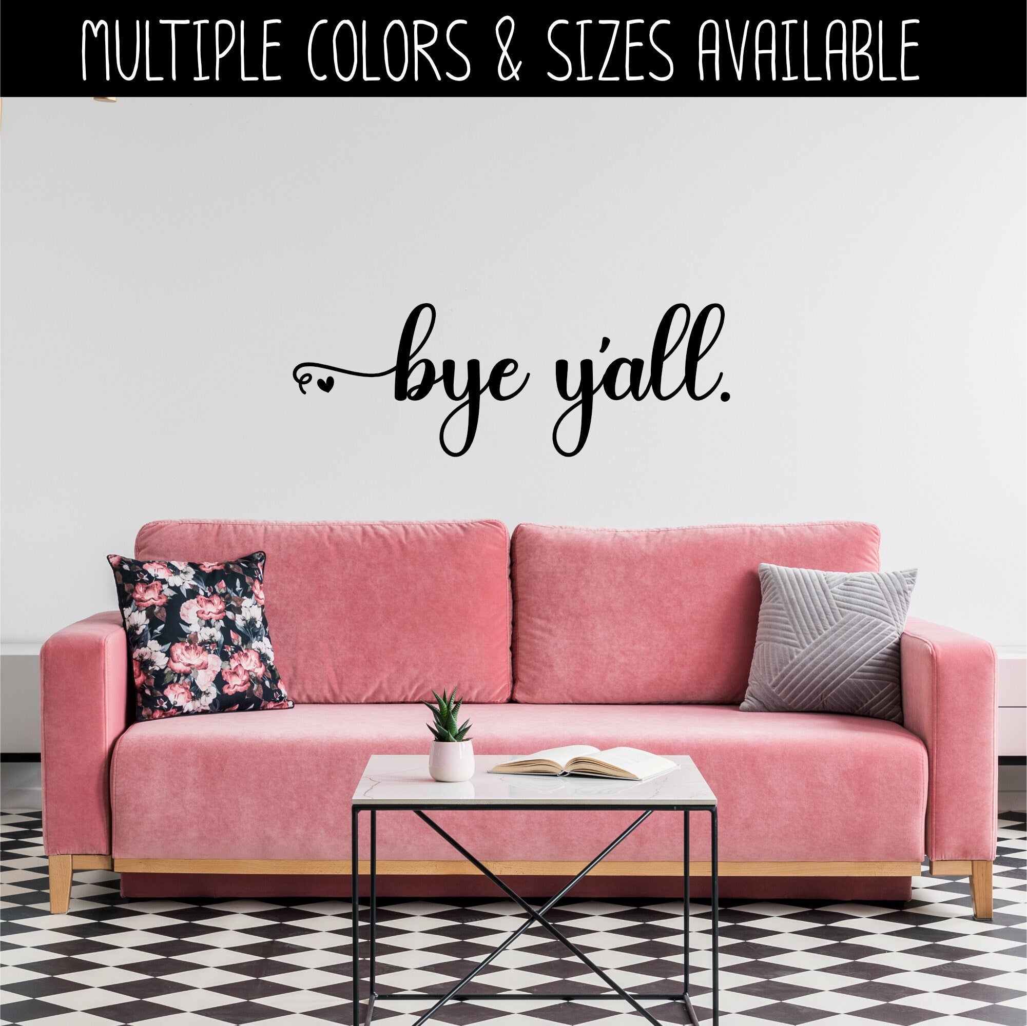 DO NOT USE listing mockups to choose a size. Mockups are NOT TO SCALE. Decal dimensions are available under the listing dropdown labeled “CHOOSE YOUR SIZE". To ensure you get the correct size, MEASURE THE SPACE you wish to place the decal and MAKE A TEMPLATE so you can determine if the decal is big or small enough to fit the space you have available. See below for more information.
