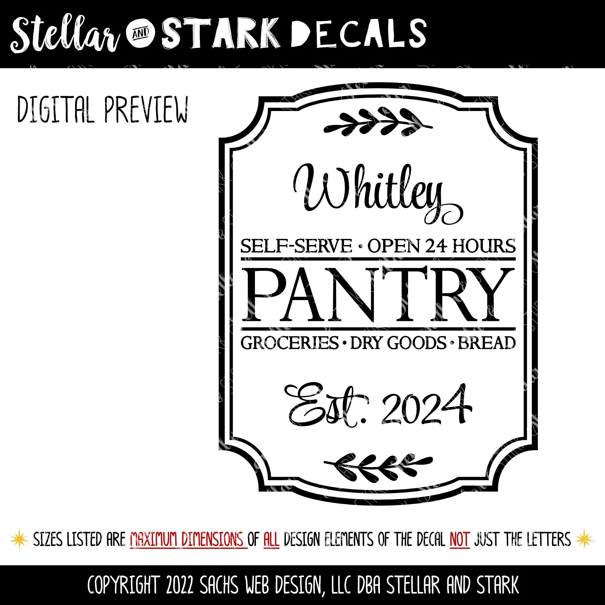 If you are interested in a customized/personalized decal, please contact us via our contact form or directly at hello@stellarandstark.net and let us know what you are looking for.