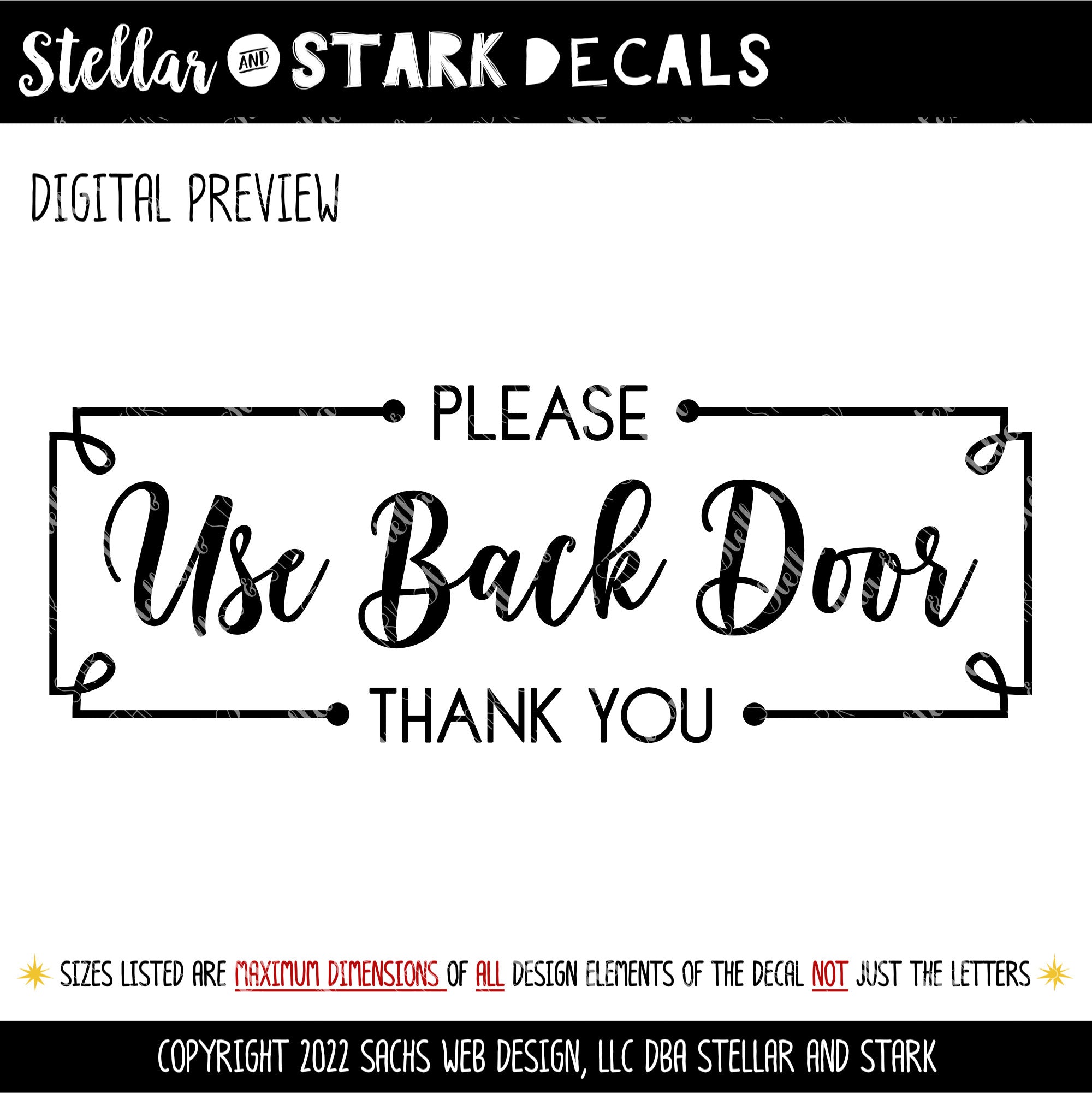 Framed Use Back Door Please & Thank You Vinyl Decal/Sticker