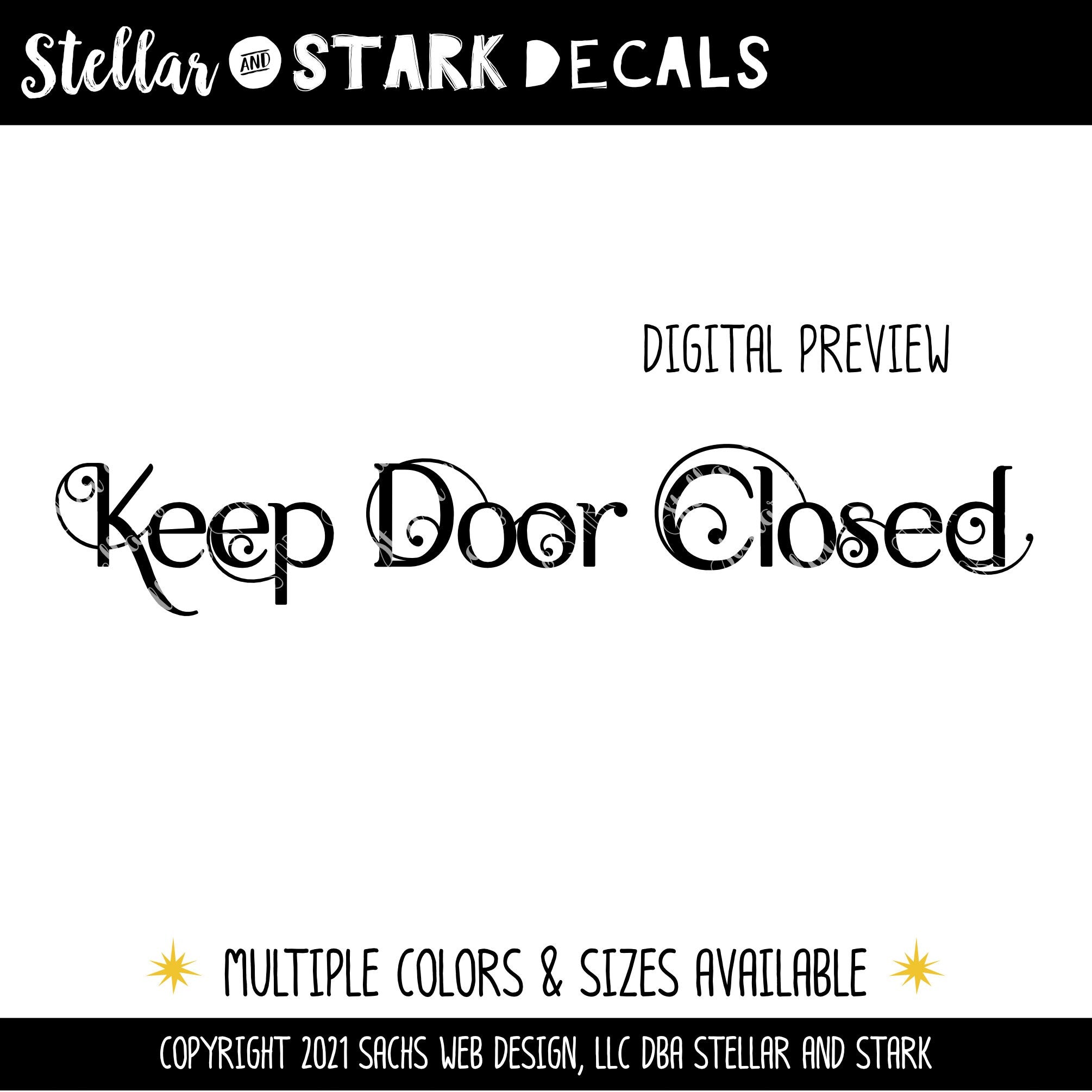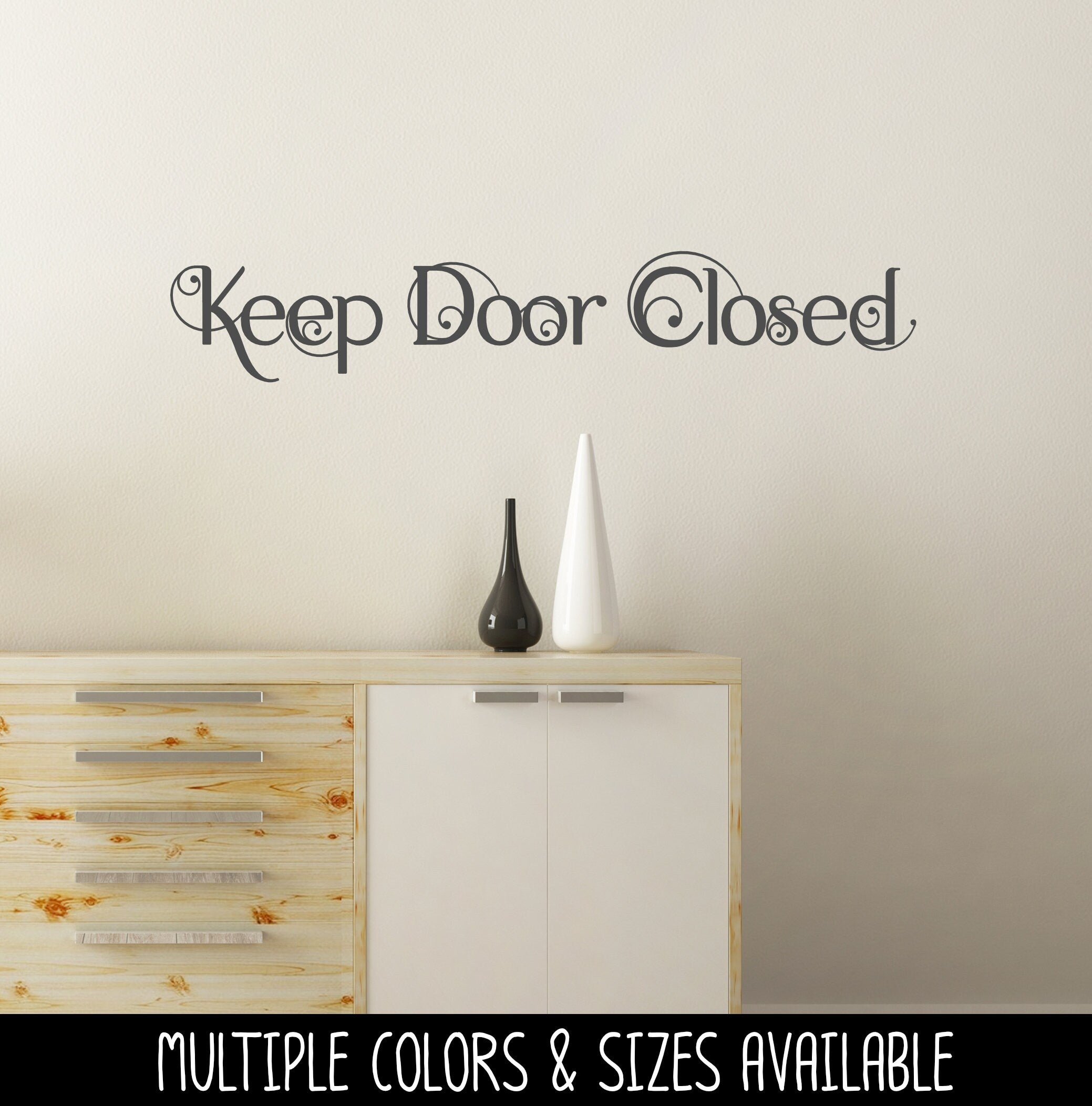 Scrolling Keep Door Closed Vinyl Decal/Sticker
