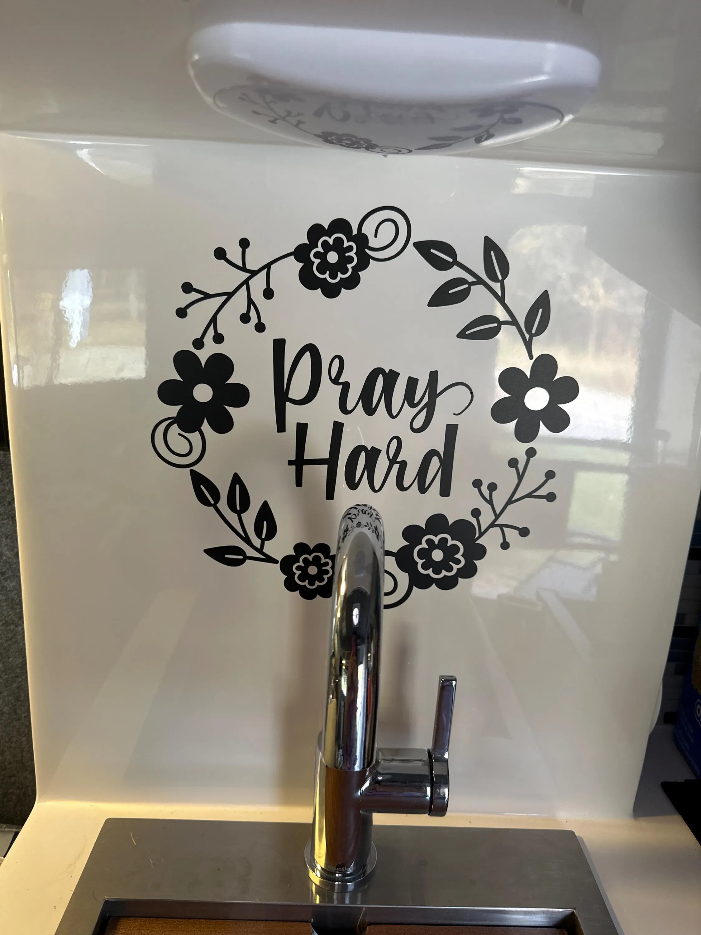 Transform your space with the Pray Hard Floral Wreath Vinyl Decal. This beautiful vinyl decal features the powerful message of... Read more