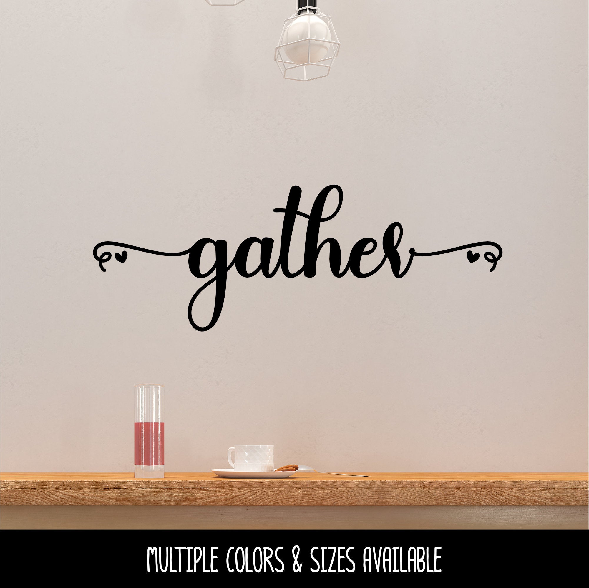 Bring enchantment and love to your kitchen and dining area with the unique Script Gather and Hearts Vinyl Decal. This... Read more
